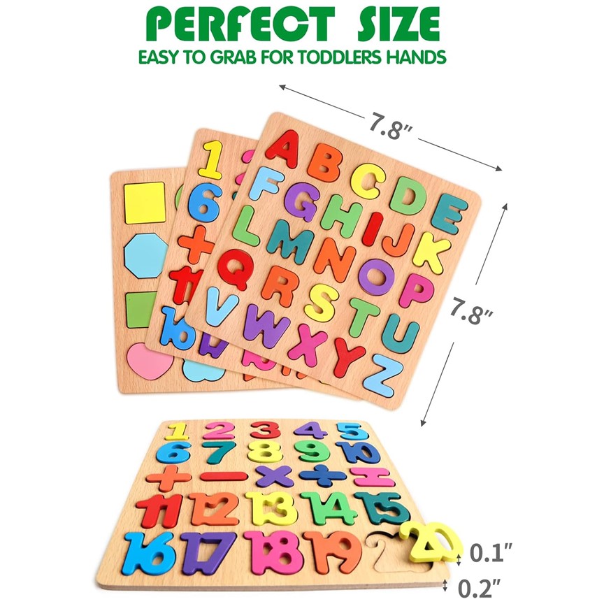 Kids Educational Learning Toys Early Childhood Wooden Puzzles Letters Alphabet Number & Shapes For 1 2 3 4 5 Year Boy Girl Toddler Children Gift 20x20cm