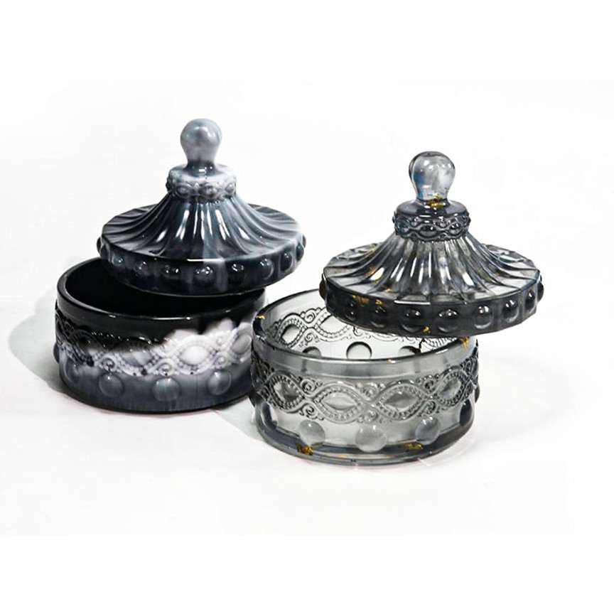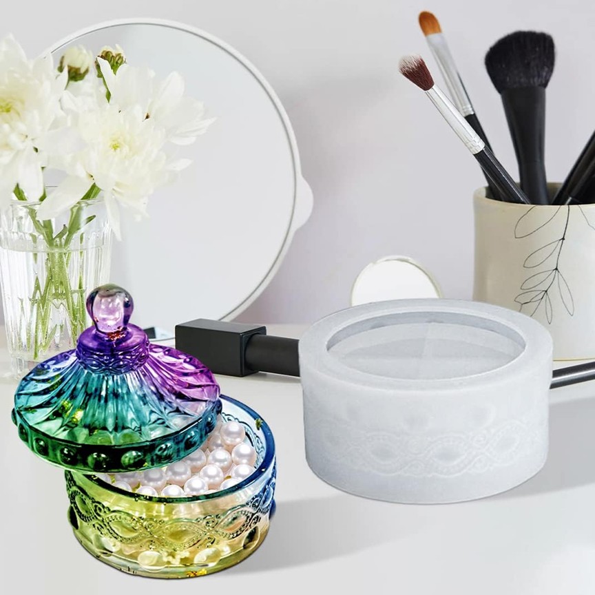 Premium elegant trinket box silicone mold with lid, ideal for making resin jewelry storage jars, decorative candle holders, and DIY crafts with polymer clay, cement, or plaster. Flexible, reusable, and easy to demold with smooth results.